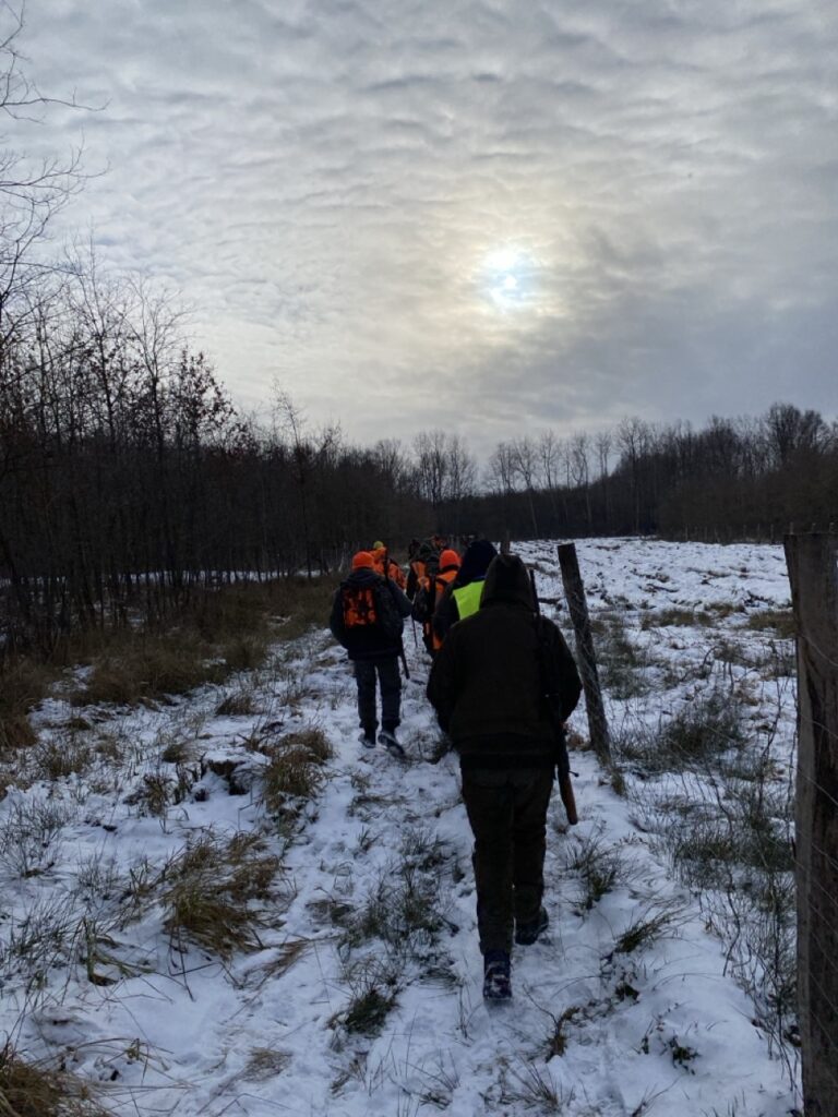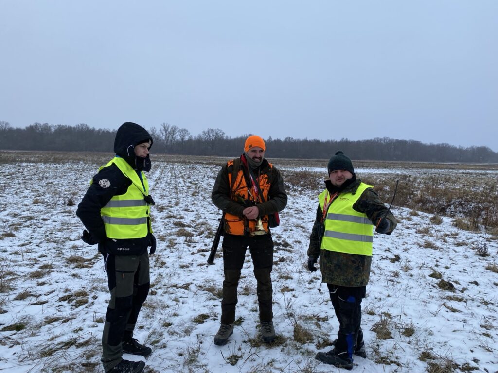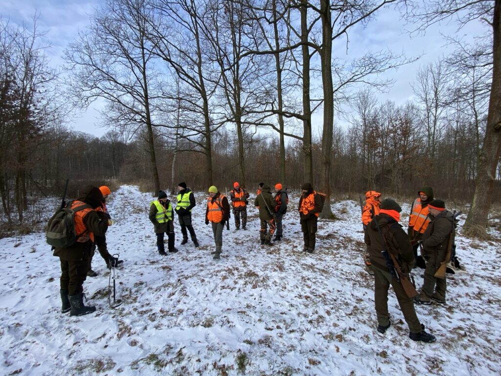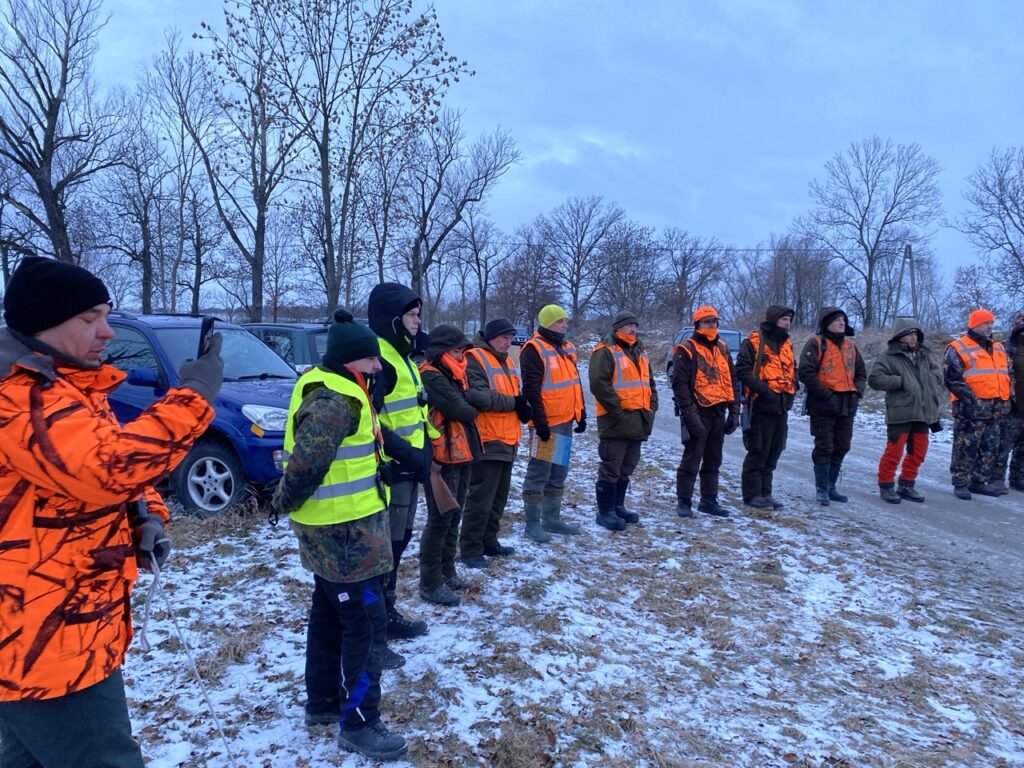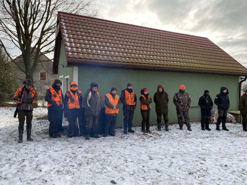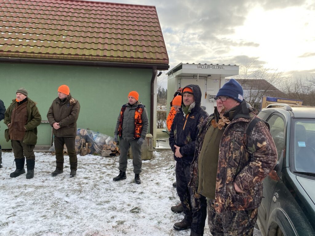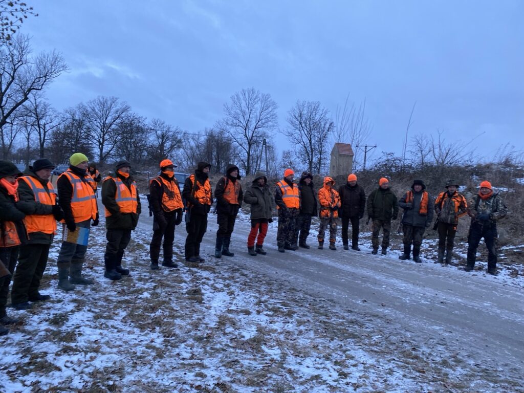 W niedzielę 11 stycznia 2026 roku odbyło się kolejne polowanie zbiorowe w naszym łowisku. Poranek nie był bardzo mroźny — było kilka stopni na minusie, jednak silny wiatr potęgował odczucie zimna. W łowisku nadal zalegał śnieg, dlatego polowanie odbywało się na białej stopie.