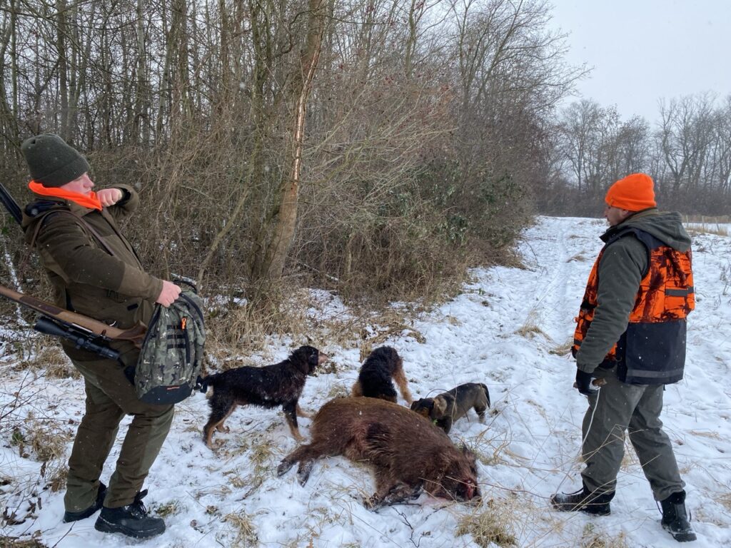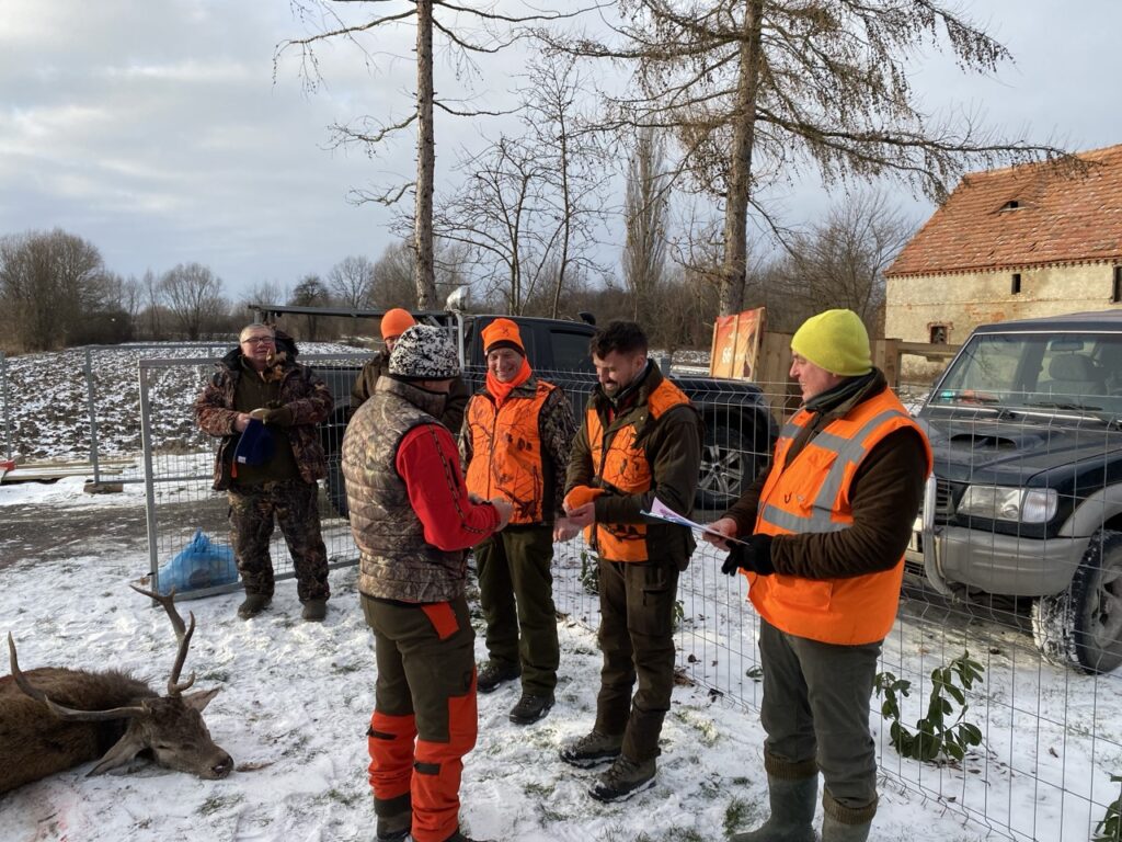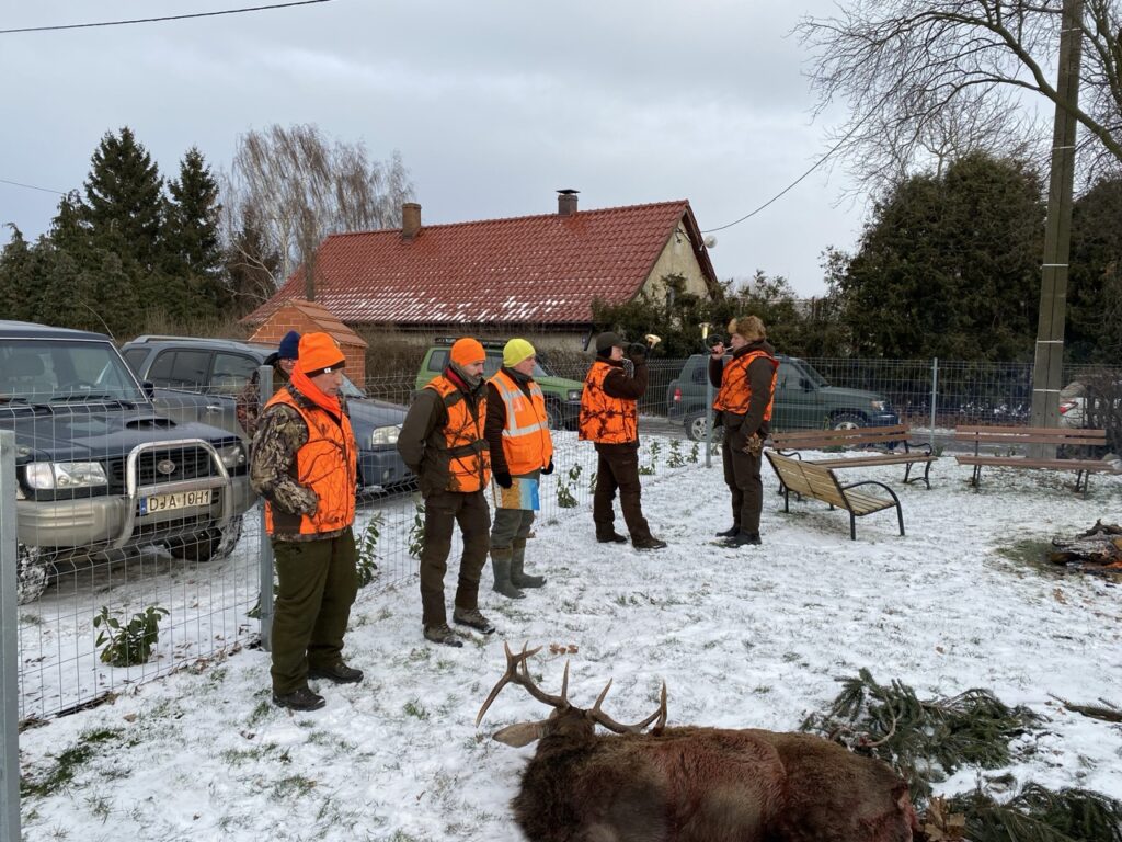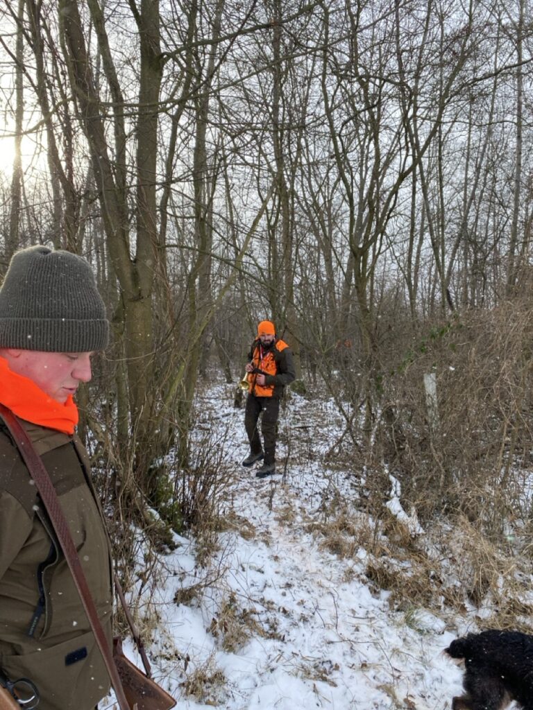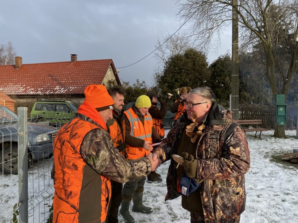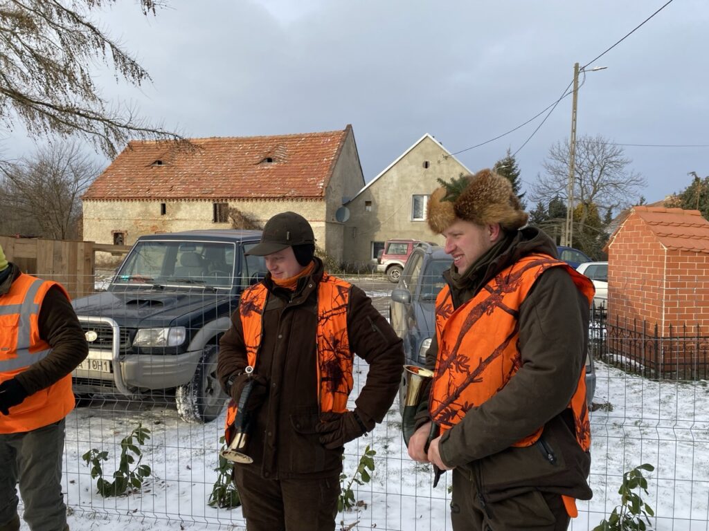 Wśród zaproszonych gości obecnych było dwóch kolegów grających na rogach myśliwskich, którzy wzbogacili polowanie o sygnały na rozpoczęcie i zakończenie polowania, a także odegrali sygnały uhonorowania zwierzyny, podkreślając tradycyjny charakter łowów.