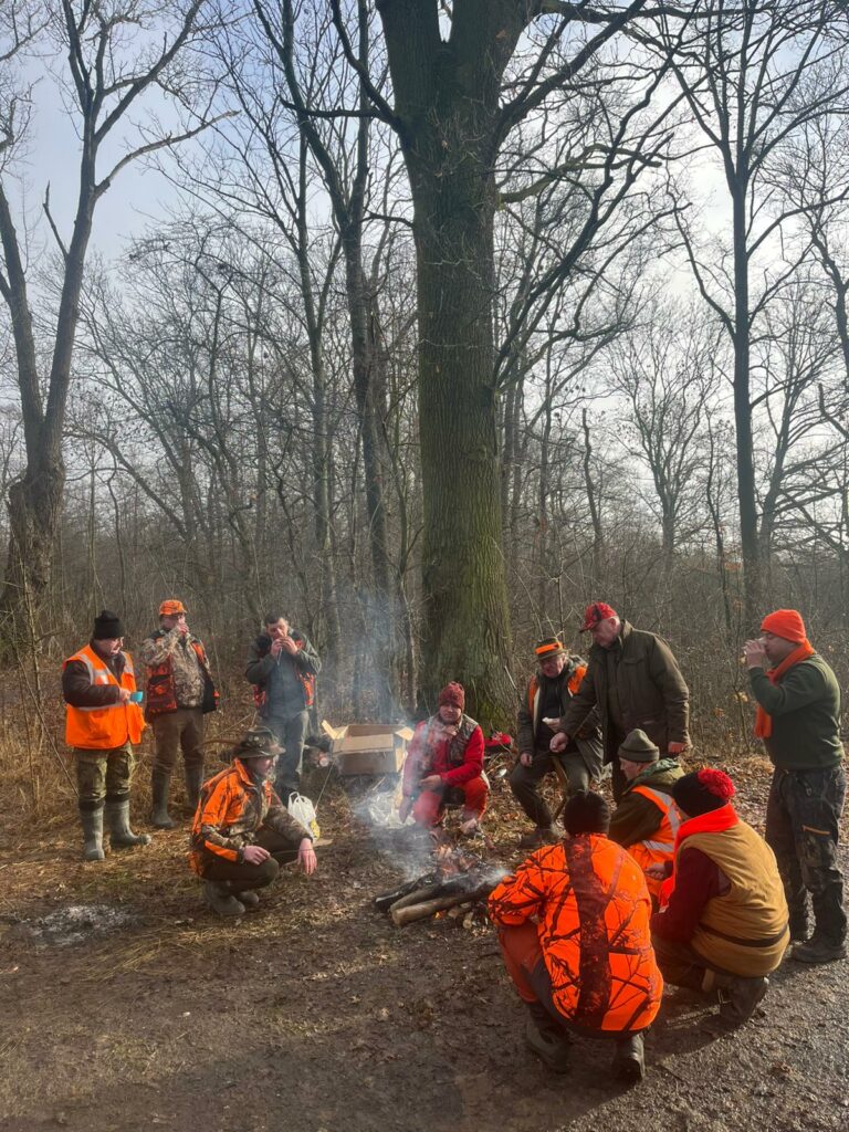 W trakcie polowania znalazł się również czas na przerwę śniadaniową, podczas której nie zabrakło ogniska i pieczonej kiełbaski. Była to chwila na odpoczynek, nabranie sił oraz rozmowy z kolegami, zanim ponownie ruszyliśmy w łowisko.